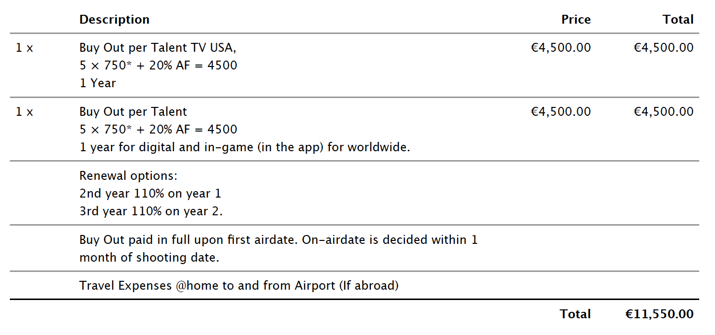 Buyout - 1 year for TV for the USA only - 5.000,- EUR